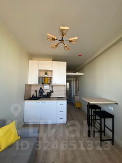 Холодильник с морозилкой. Необходимый набор посуды и столовых приборов. Чайник, микроволновка, индукционная плита. Барная стойка с двумя стульями. Диван раскладывается по принципу аккордеон.