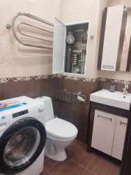 Санузел совмещенный, в плитке, стиральная машина есть.