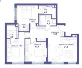 В квартире имеется две мастер - спальни, которые полностью укомплектованы и одна спальня не обставлена, собственники готовы ее обставить под ваш запрос.