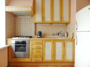 Гостиная с огромным вместительным шкафом-купе, кожаным раскладывающимся диваном и застекленным балконом. Спальная комната с роскошной двухспальной кроватью и шкафом. В каждой комнате по кондиционеру, включая и кухню, оборудованную всем необходимым, с ГАЗОВОЙ плитой, БЕЗ посудомоечной машины.