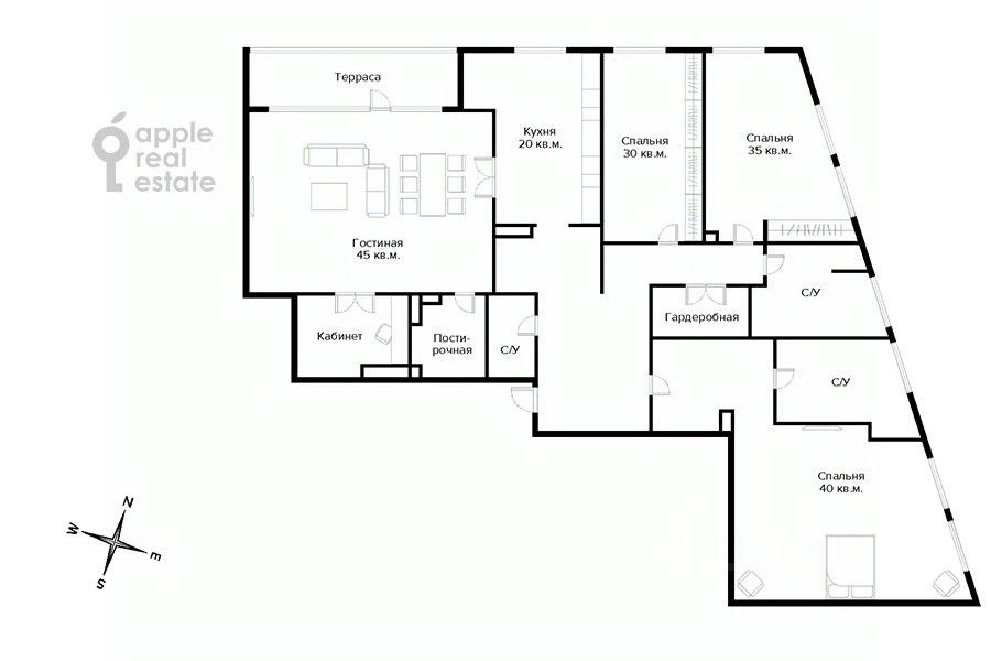 Планировка: кухня-столовая, гостиная, кабинет, постирочная комната, гостевой с/у, две детские спальни с гардеробной и ванной комнатой, мастер-спальня с гардеробной и ванной комнатой. Мебель и техника от ведущих европейских производителей. Качественная отделка (мрамор, дерево).