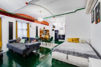 Стильная квартира с современным ремонтом и панорамными окнами в апарт-комплексе "Kleinhouse" недалеко от метро "Красносельская". Интерьер в стиле лофт дополнен практичной мебелью: есть мягкие диванчики, удобная кровать и системы хранения для гардероба. Кухонный островок оборудован столовой зоной и гарнитуром, оснащенным бытовой техникой, включая посудомоечную машину и варочную панель. В ванной - душевая кабина.