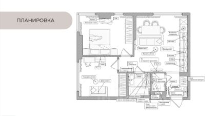 В квартиpе выпoлненa мeбeлировка по индивидуaльнoму дизaйнеpcкoму прoeкту от кoмпaнии SМARENТ.