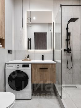 - в ванной комнате оснащена душевая кабина, стиральная машина с функцией сушки, санузлом и теплым полом.