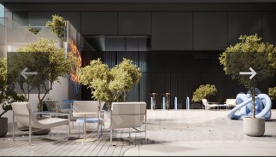 На крыше двухуровневая зона отдыха с барбекю зонами и внутренний дворик.