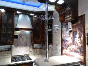 На кухне установлена многоступенчатая система очистки воды в паре со смесителем Kaiser и отдельным краном для излива очищенной фильтром воды. На кухне есть все необходимые принадлежности: посуда, средства гигиены и т. д.
