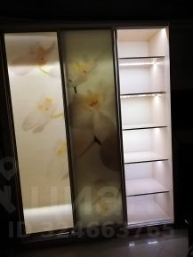 Просторный шкаф-купэ с функцией подсветки всех полок и дверными створками из закаленного стекла.