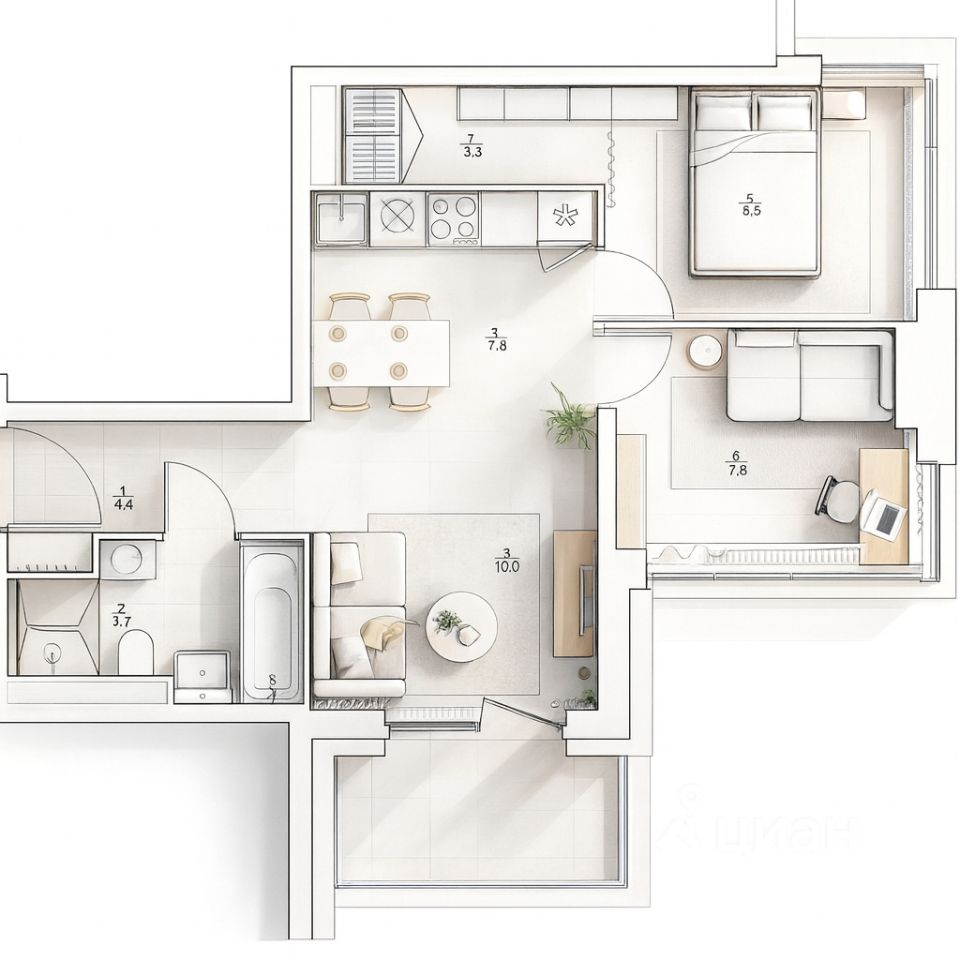 Планировка работает на комфорт длительного проживания и гибкость повседневных сценариев.