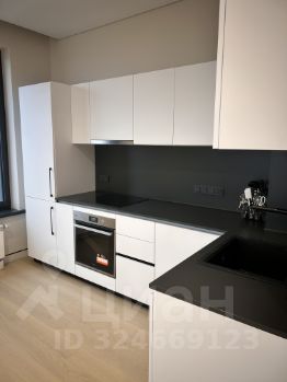 Кухня со всей мебелью и техникой, шторы и карнизы уже почти готовы, сан.узлы и прихожая оборудована.