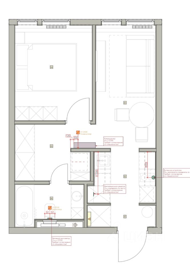 полноценная однокомнатная квартира с кухней-гостиной и спальней.