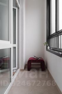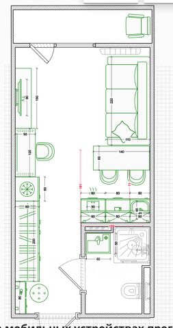 У панорамного окна расположена зона отдыха с раскладным диваном и телевизором, а также выход на светлый балкон.