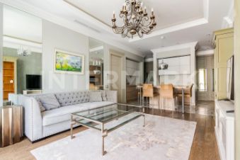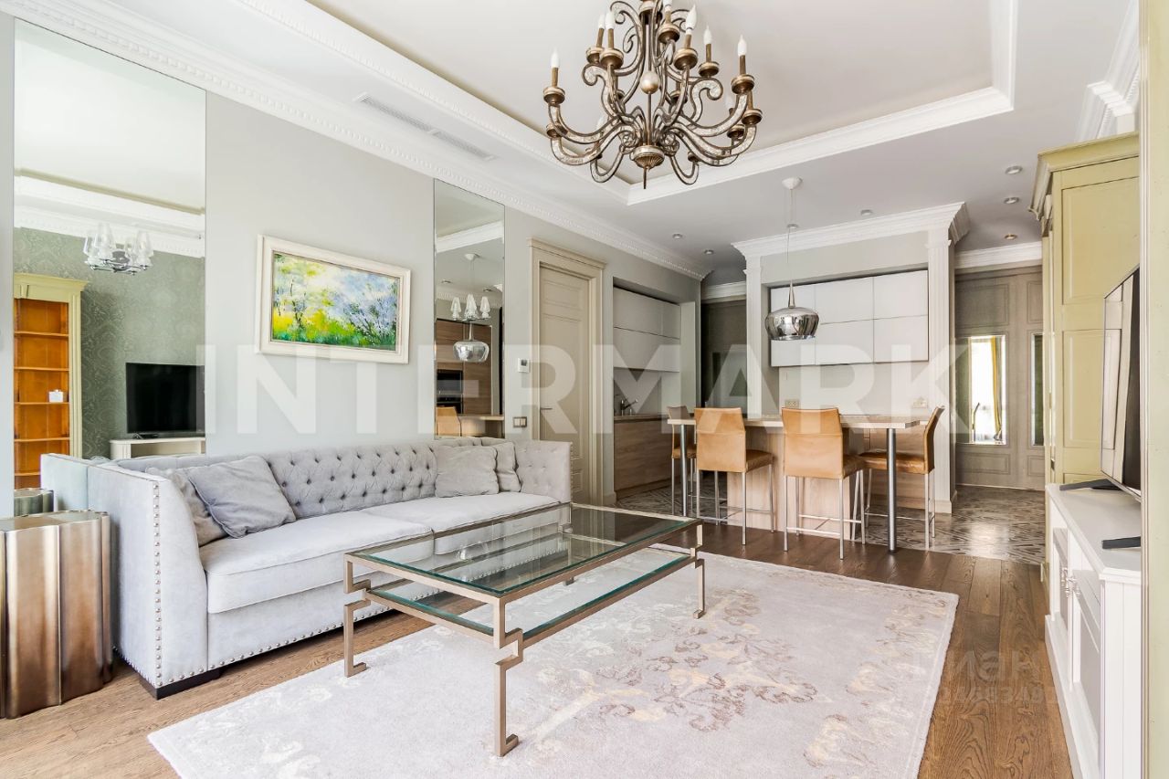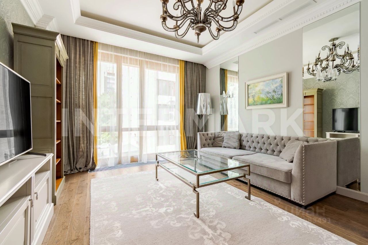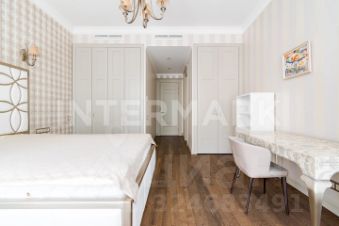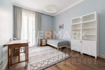 ID 40815. Стильная четырехкомнатная квартира площадью 153 кв.м расположена на третьем этаже элитного ЖК "Литератор" в Хамовниках. Планировка: большая кухня-гостиная, три спальни с отдельными ванными комнатами (c душевыми кабинами, ванны нет), просторная гардеробная и постирочная. Выполнена дизайнерская отделка натуральными дорогостоящими материалами, стеклопакеты со звукоизоляцией, кондиционеры, деревянные полы. Место на подземной парковке предоставляется за дополнительную плату. Можно с детьми.