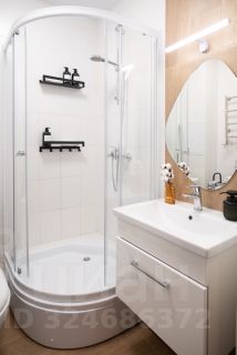 - стиральная машина, душевая кабина, унитаз, раковина с хранением, зеркало с подсветкой, полотенцесушитель
