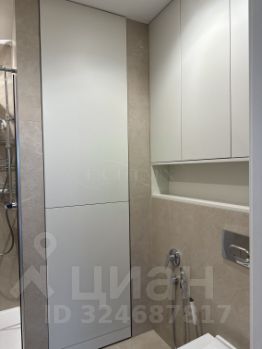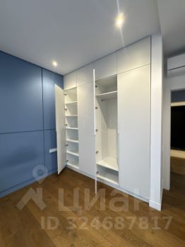 Интерьер выполнен с использованием высококачественных материалов: пол — инженерная доска POLARWOOD, санузлы облицованы керамогранитом ITALON. Кухня оснащена встроенным кухонным гарнитуром, в прихожей и спальне установлены встроенные шкафы с фасадами МДФ и фурнитурой BLUM. Комфорт обеспечивают кондиционеры LG с закрытой дренажной системой, подключённые к общедомовой VRV-мультисистеме.