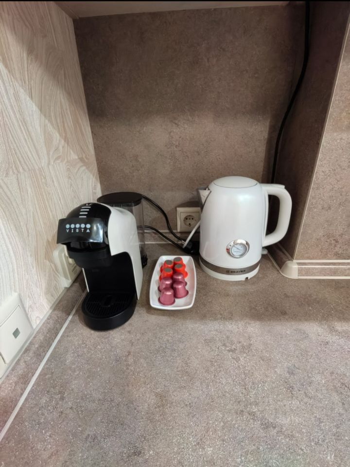 1. Чай, кофе сахар, оборудованная кухня, посуда, столовые приборы,все для приготовления еды.