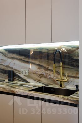 На кухне установлена техника бренда Bosch, предусмотрены измельчитель отходов, встроенные дозатор и система осмоса. Встроенный винный шкаф. Сушильная и стиральная машины — премиум-бренд ASKO.