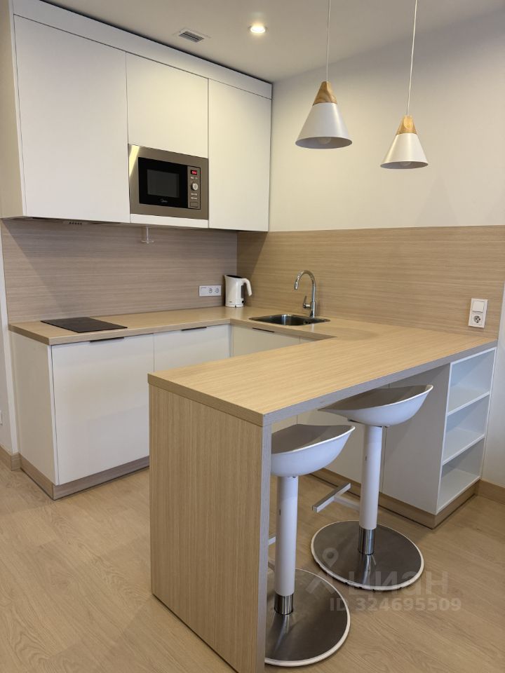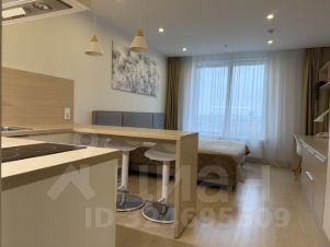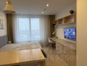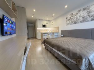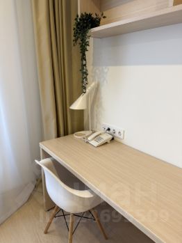 В студии выполнен дизайнерский ремонт, продуманный до мелочей. В комнате и на кухне есть вся необходимая мебель.