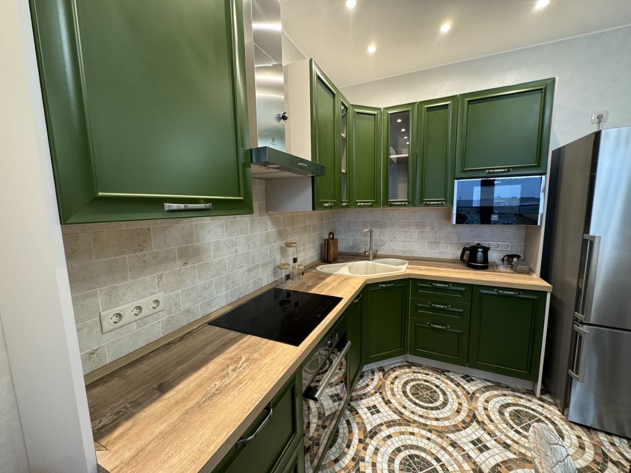 Новая евродвушка с авторским ремонтом: кухня объединена с гостиной, отдельная спальня с большой гардеробной, совмещенный санузел с ванной и душем. Квартира полностью меблирована, установлена качественная сантехника, продуманы различные сценарии освещения, есть приточно-вытяжная вентиляция и система кондиционирования, панорамные окна.