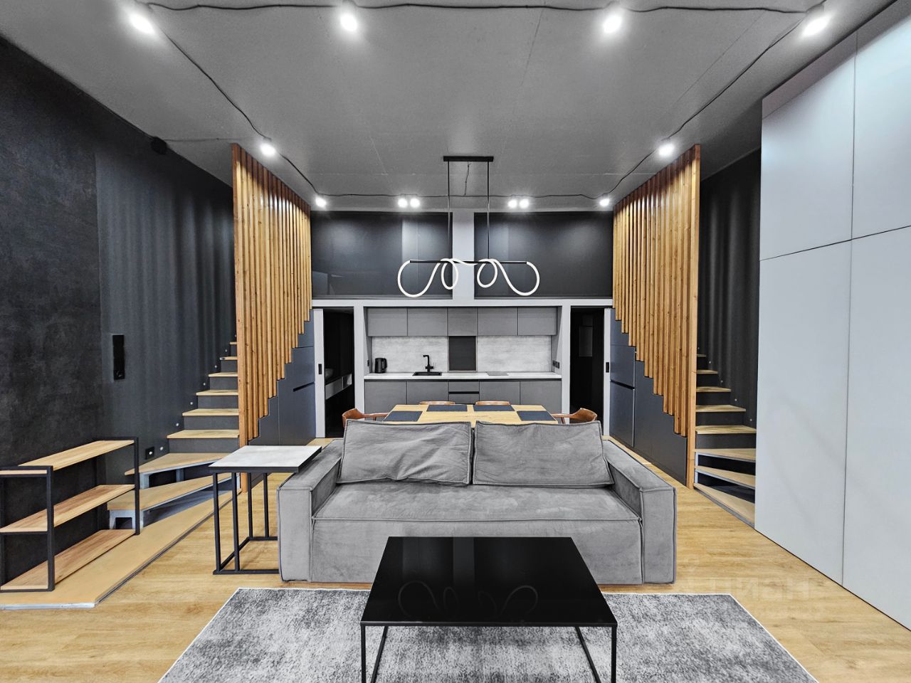- Площадь квартиры по полу 44 квадрата, антресольный этаж дает две дополнительные большие спальни площадью еще 14 квадратов.