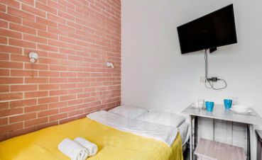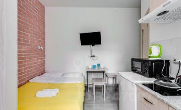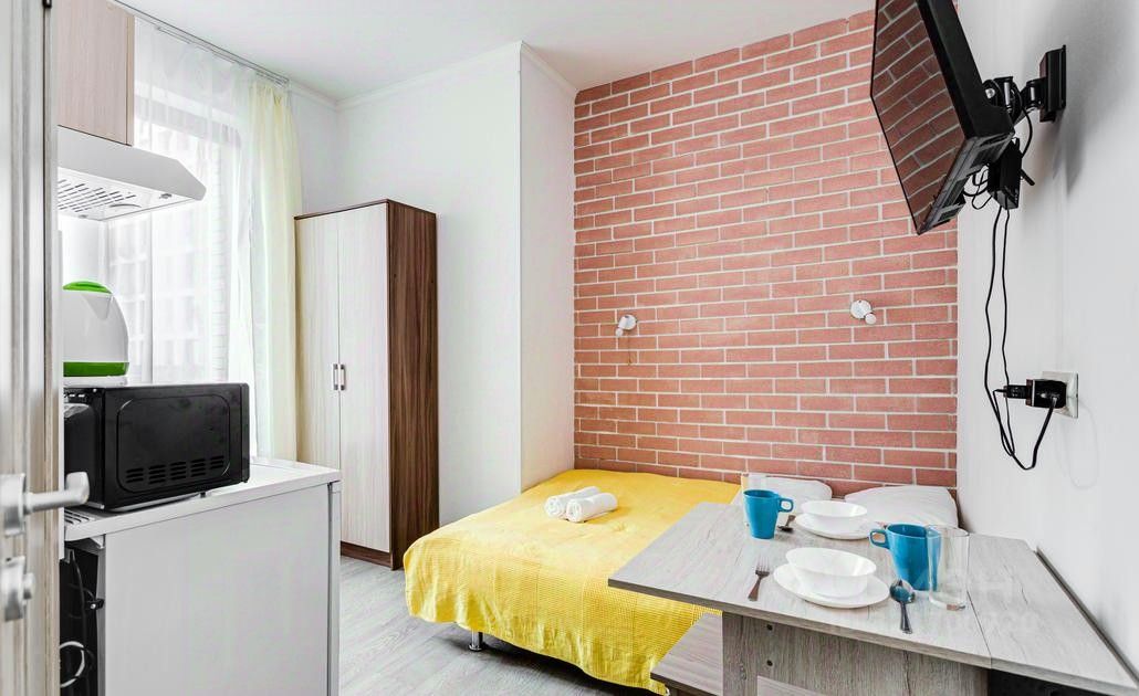 В апартаментах есть возможность размещения до 2 человек, спальное место двуспальная кровать. Студии со свежим ремонтом, полностью меблированы, есть вся техника, посуда, постельные и гигиенические принадлежности. К услугам гостей: бесплатный wi-fi, телевизор, фен.