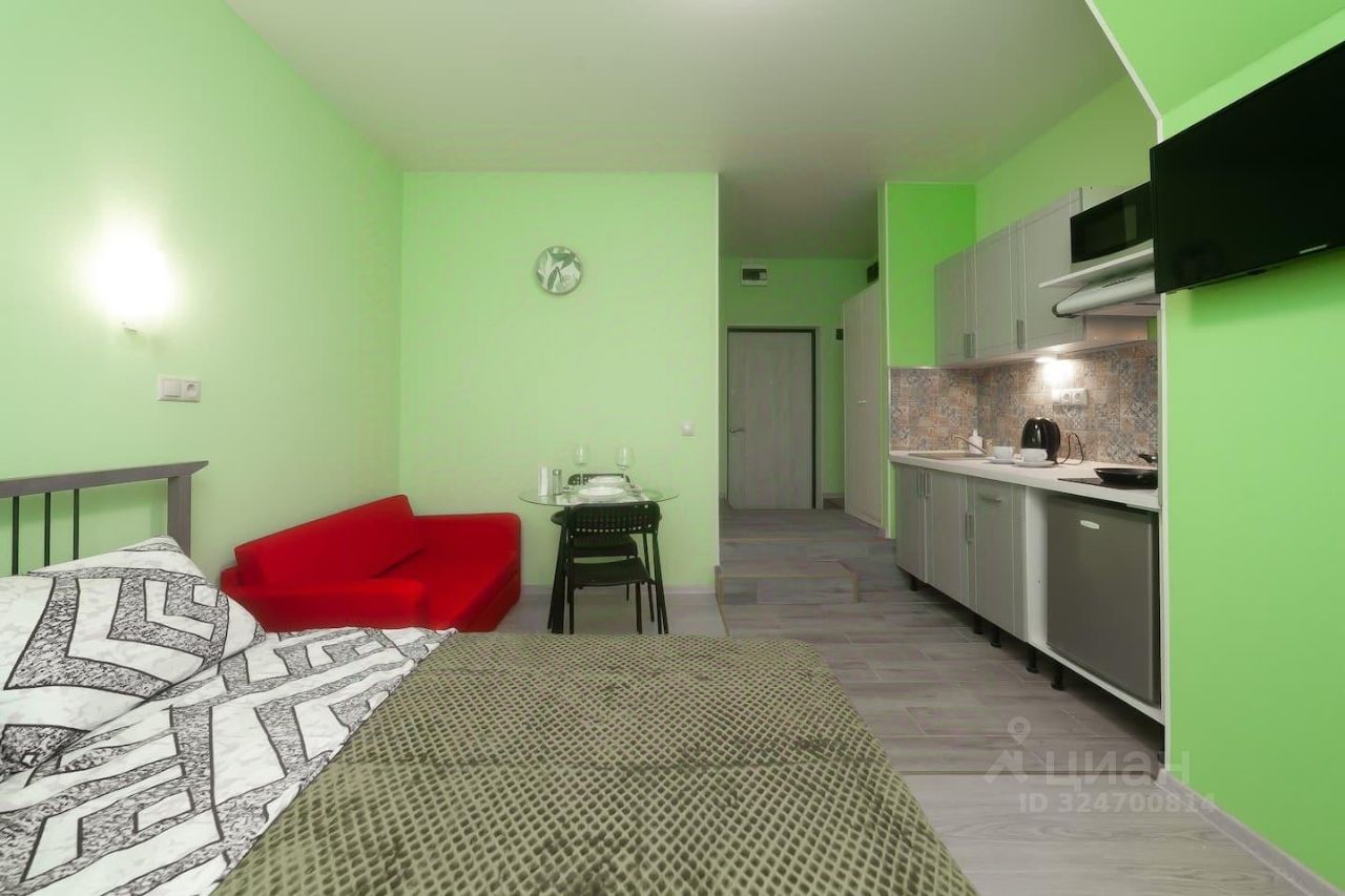 В студии возможно размещение 3 гостей, спальные места - двуспальная кровать, диван-кровать. Имеется все необходимо для комфортного отдыха: телевизор с плоским экраном и кабельными каналами, полностью оборудованная кухня (холодильник, микроволновая печь, чайник, электрическая плита), собственная ванная комната с душем и феном. Гостям предоставляются полотенца и постельное белье.
