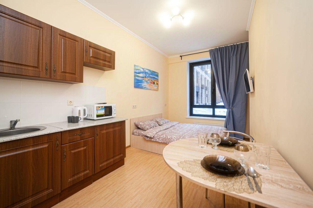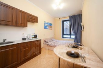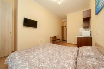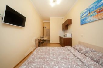 В студии выполнен свежий ремонт, чистая и уютная. Возможно размещение 2 гостей, спальное место - двуспальная кровать. Квартира полностью меблирована, есть вся необходимая техника и посуда на кухне, постельные принадлежности, стиральная машина, бесплатный wi-fi, телевизор.