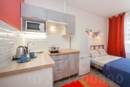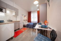 В апартаментах: двуспальная кровать, телевизор, кухонная зона, холодильник, электрический чайник, стиральная машина, электрическая плита, фен.