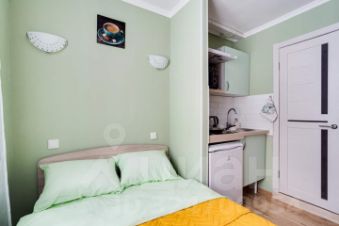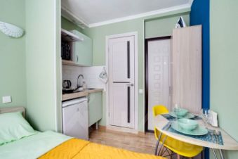 В апартаментах возможно размещение до 2 гостей, спальное место - двуспальная кровать. Студия полностью меблирована и оборудована всем необходимым для комфортного проживания: бесплатный wi-fi, постельные принадлежности, фен, телевизор, небольшая кухня (холодильник, микроволновая печь, чайник, электрическая плита, посуда).