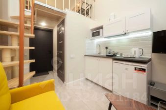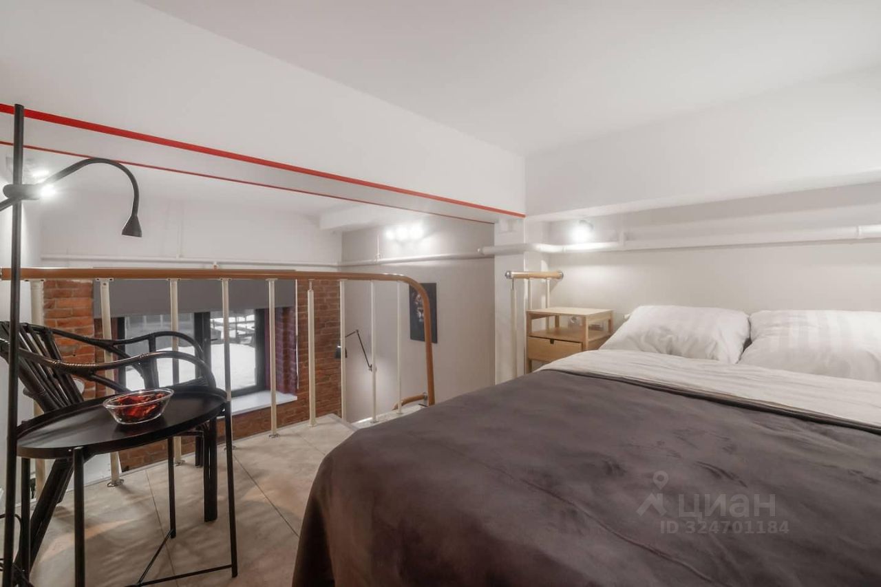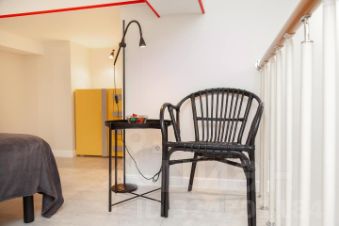 Стильная двухуровневая студия подходит для комфортного отдыха 3 человек. Спальное место - двуспальная кровать расположено на верхнем уровне апартаментов. На нижнем уровне находится диван, мини-кухня со всем необходимым для приготовления еды: холодильник, микроволновая печь, чайник, электрическая плита, холодильник, обеденная зона. Санузел совмещенный с душем и стиральной машиной.