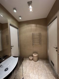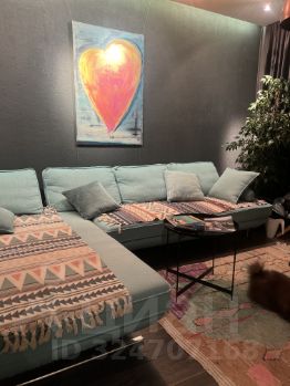 ГОСТИНАЯ с огромным диваном, обеденным столом. Квартира полностью меблирована и готова к проживанию. По необходимости часть мебели можно вывезти. В квартире выполнен дизайнерский ремонт, сантехника Villeroy&Boch, смесители Grohe. На полу паркетная доска и итальянская плитка. Очень много удобных световых решений, от яркого освещения, до нежного вечернего света и ночной подсветки в коридоре. Два телевизора. Два взрослых дерева в дизайнерских горшках - оставим на попечительство арендаторам для уюта.