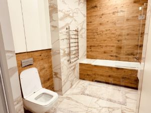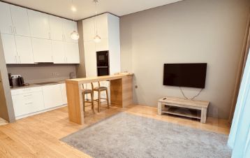 Апартаменты с косметическим ремонтом, полностью меблированы и оснащены всей необходимой техникой: кондиционер, телевизор, холодильник, посудомоечная и стиральная машины. Просторная жилая зона в 40 кв.м плавно переходит в кухню площадью 8 кв.м, где есть все необходимое для комфортного проживания. Высокие потолки в 3.2 метра создают ощущение простора и света. В совмещенном санузле есть и ванна, и душевая кабина — выбирайте, что вам больше по душе.