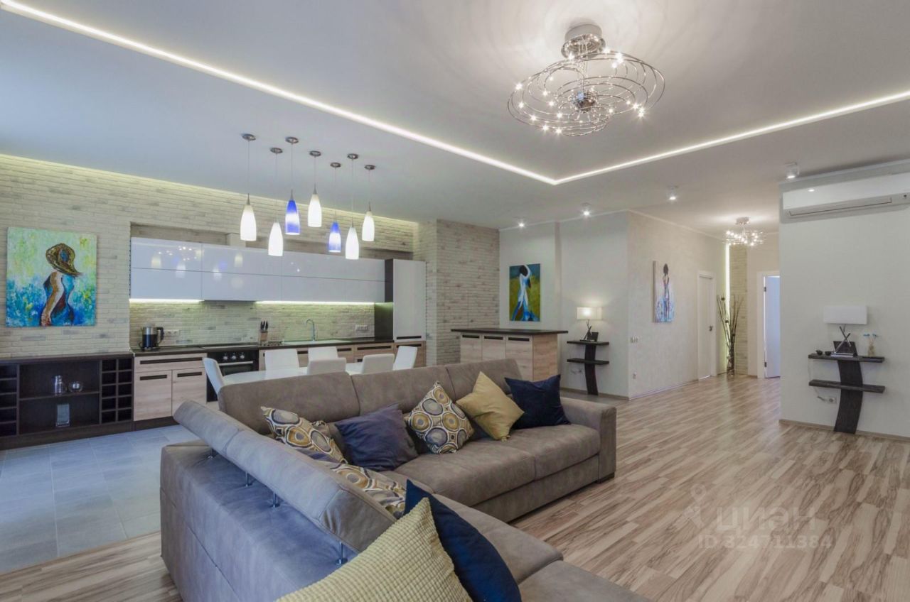 - Просторная кухня-гостиная, оборудованная всей необходимой мебелью и техникой.