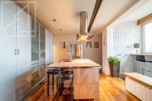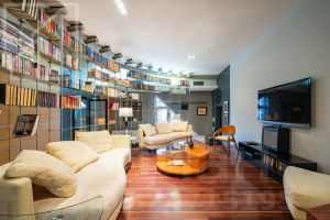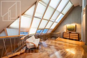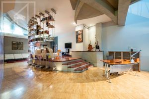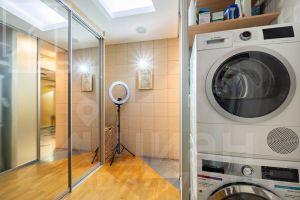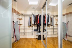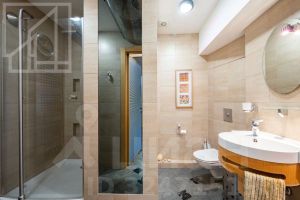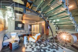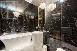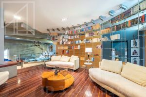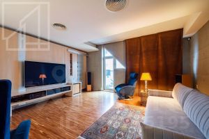 Планировка: кухня-столовая и две гостевые зоны, четыре спальни, кабинет с библиотекой, домашний кинотеатр, три полноценных санузла, постирочная, гардеробная, два балкона. Потолки 3м. В квартире установлены: система кондиционирования, качественная бытовая техника, бойлер, высокоскоростной интернет, система умный дом.