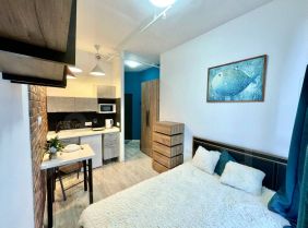 • Укомплектованная кухня: индукционная плита, холодильник, микроволновка, посуда.
