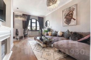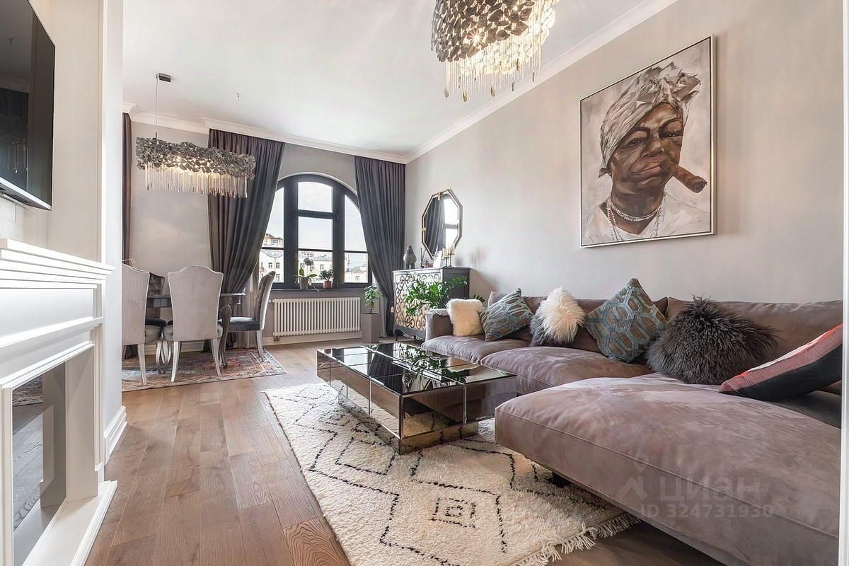 Сдается в аренду просторная четырехкомнатная квартира площадью 108 кв. м. Расположена на 4-м этаже шестиэтажного монолитно-кирпичного дома, построенного в 2013 году. Высокие потолки (3.4 метра) придают помещению дополнительный объем и свет. Дом находится всего в 8 минутах пешком от метро "Маяковская".