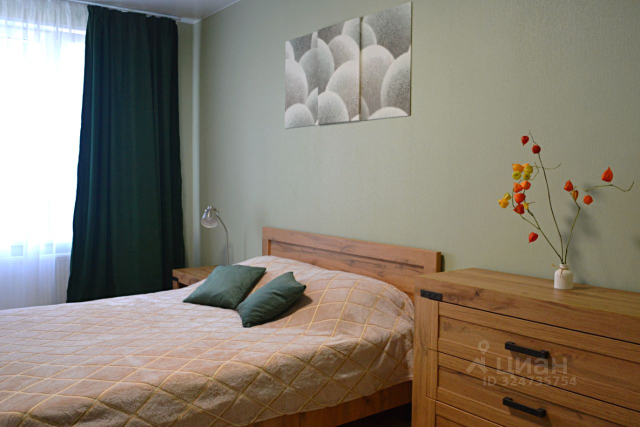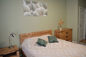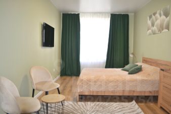 Квартира выполнена в приятных природных цветах и имеет все необходимое для комфортной жизни: двухспальная кровать с ортопедическим матрасом, вместительный шкаф и комод, большой современный телевизор и многое другое.