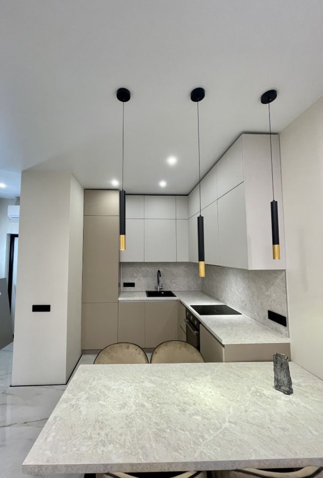 Кухня: гарнитур в потолок, духовой шкаф, варочная панель, вытяжка, посудомоечная машина встроенная, холодильник встроенный.