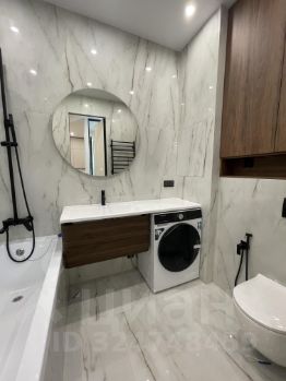 Санузел: стиральная машина, шкафчик для хранения вещей, ящик под раковиной, есть датчики от затопления.