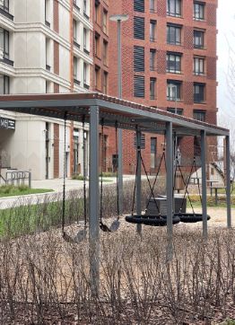 - закрытый двор-парк с концепцией "Двор без машин", где тихо и уютно, много зелени, а также благоустроенные зелёные пространства на территории района.