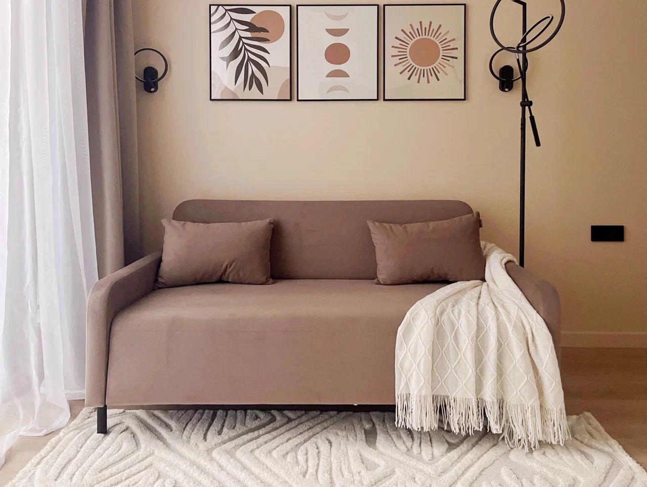 Дизайнерская меблировка от компании SMARENT выполнена в светлых природных тонах, что визуально расширяет пространство и создает атмосферу домашнего уюта.