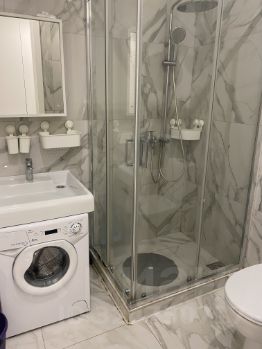 В студии есть вся необходимая мебель как на кухне, так и в комнате. Для вашего удобства установлены холодильник, телевизор и стиральная машина. Санузел совмещенный,