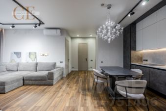 Ремонт производился по проекту от ведущих дизайнеров с применением экологичных материалов премиум сегмента. В планировке гостиная, совмещенная с зоной кухни и две изолированные спальни: одна с большой кроватью, вторая с двумя односпальными кроватями. Вместительная гардеробная. Телевизор 46". Кондиционеры обеспечивают оптимальный климат. Кухонный гарнитур оснащен полным комплектом бытовой техники. Без учёта КП. Возможна дополнительная комплектация по запросу арендатора. Стены и потолки оснащены высокоэффективной шумоизоляцией + межкомнатные двери с шумоизоляцией. Подъезд оборудован комнатой для колясок, санузлом.