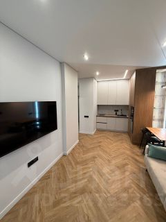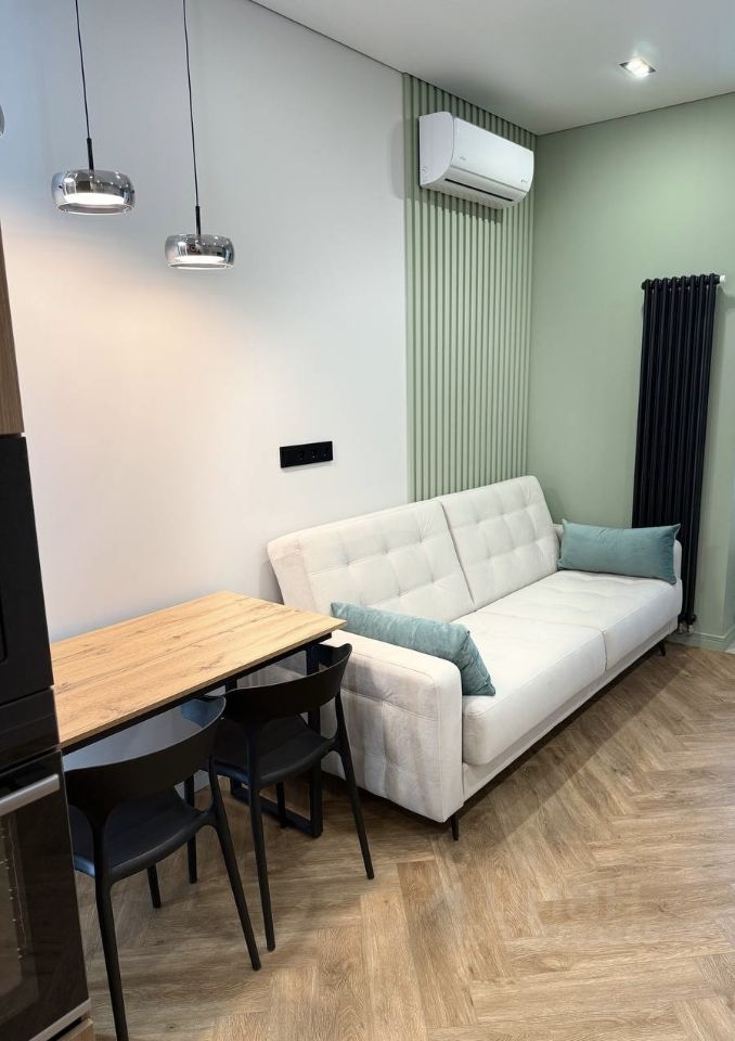 Отличная планировка: отдельная спальня, просторная кухня-гостиная с теплым балконом, совмещенный сан. узел с теплым полом, прихожая (так же с теплым полом)