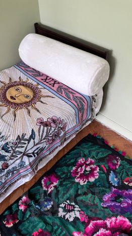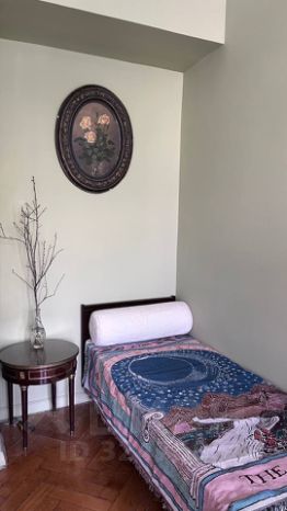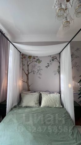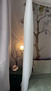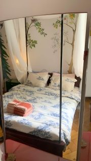 На стенах в спальне - живописная роспись, есть трюмо, гардеробный шкаф и двуспальная кровать с балдахином и ортопедическим матрасом! Окна спальни выходят во двор.