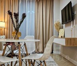 Квартира выполнена в дизайнерском стиле и полностью готова к проживанию. В каждой комнате установлена необходимая мебель, а на кухне уютно и комфортно благодаря современному оснащению. Вам не придется заботиться о бытовой технике — в квартире уже есть кондиционер, холодильник, посудомоечная и стиральная машины, а также телевизор. Два отдельных санузла обеспечат удобство для всей семьи, а в ванной комнате установлена полноценная ванна.