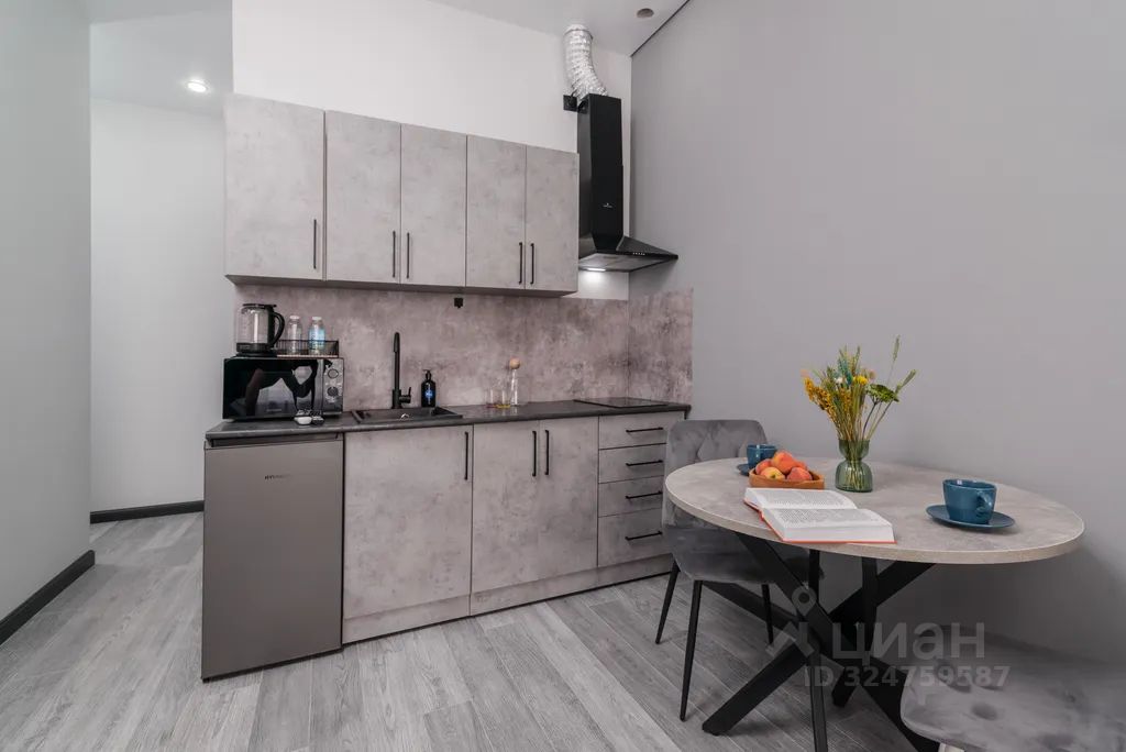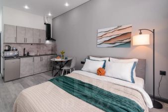 - Полноценная кухня (электроплита, холодильник, микроволновка, чайник)