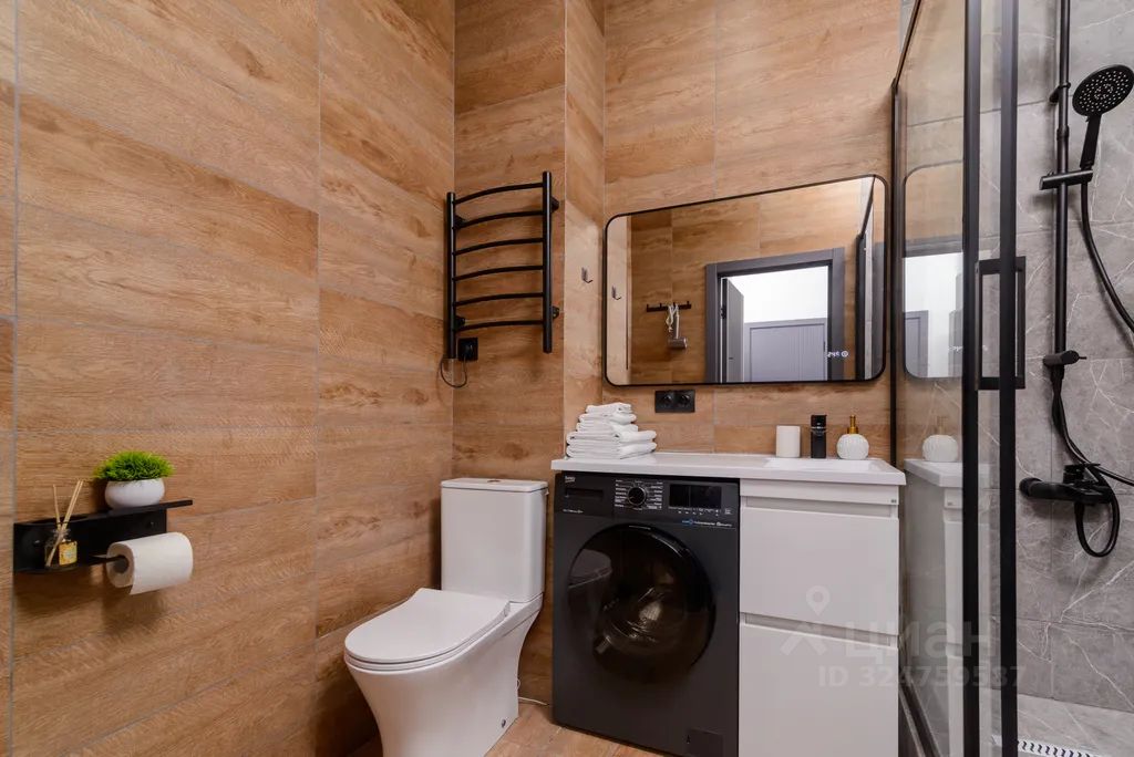 - Санузел совмещённый, душ, стиральная машина, фен, утюг