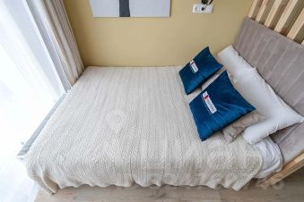 Студия оборудована всем необходимым для комфортного проживания, включая кондиционер для поддержания оптимальной температуры в любое время года. В качестве спального места установлена двуспальная кровать, обеспечивающая комфортный сон.