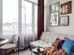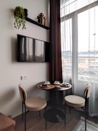 Вечером вы насладитесь завораживающим видом из панорамных окон, ночью выспитесь на широкой кровати в тишине благодаря шумозащитным стеклопакетам.