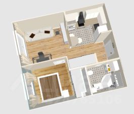Удобная планировка: кухня-гостиная и спальня.